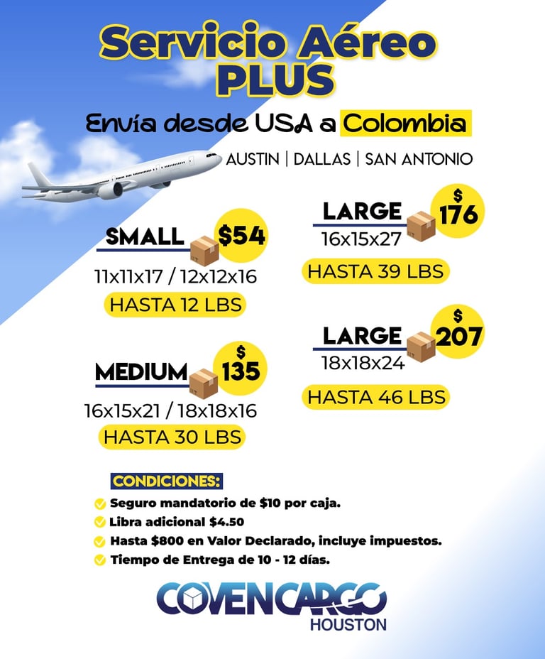 Con nuestro servicio aéreo tus envíos llegan en pocos días directamente a su destino.