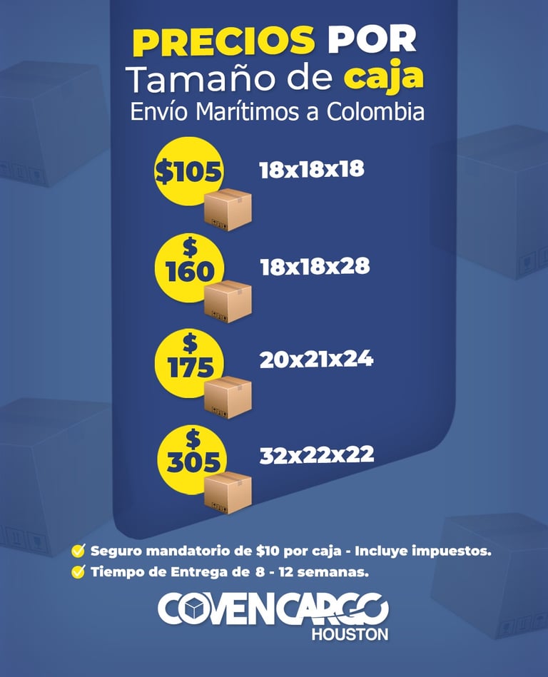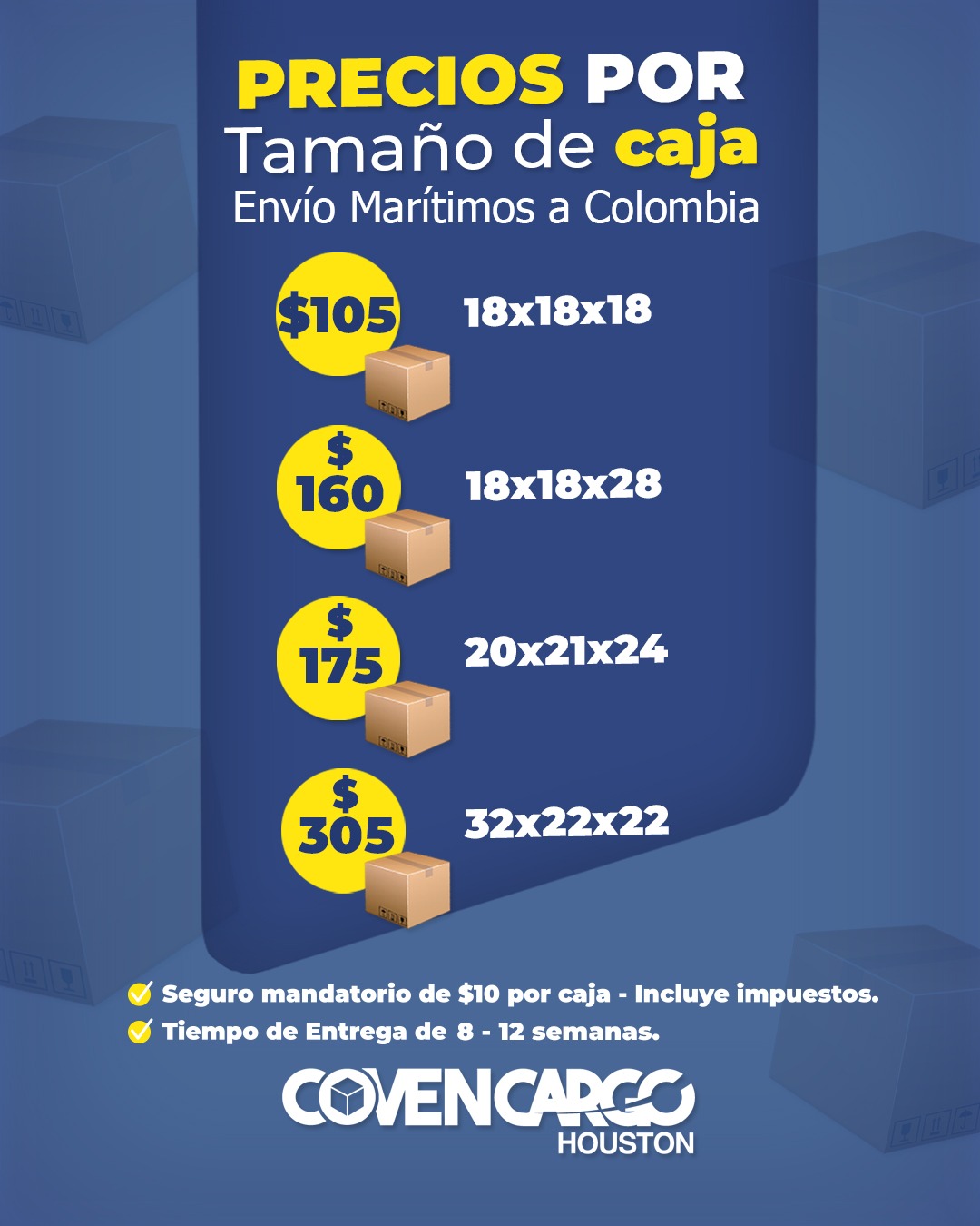 ✔ Seguro obligatorio $10 por caja.