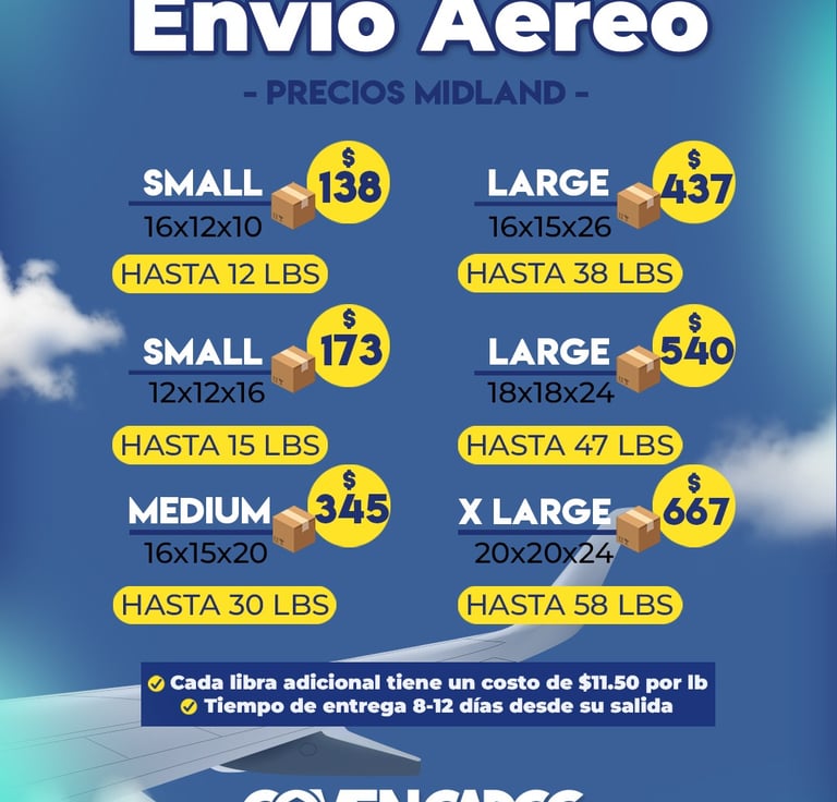 Nuestras tarifas son fijas por caja Small, Mediana y Large, o por caja irregular y libra suelta. Así, tu carga vuela con total seguridad y llega a su destino sin demoras.