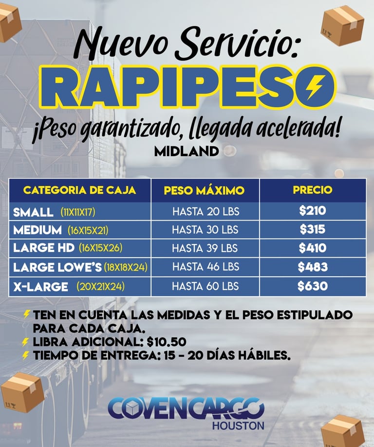Este nuevo servicio está diseñado para cargas medianas y pesadas: envía cajas de hasta 35 lbs, 65 lbs o 85 lbs a una tarifa fija y competitiva.