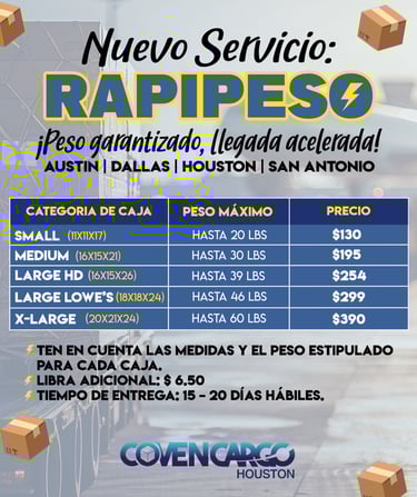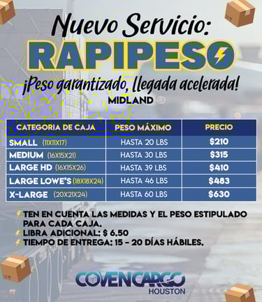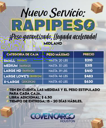 Este nuevo servicio está diseñado para cargas medianas y pesadas: envía cajas de hasta 35 lbs, 65 lbs o 85 lbs a una tarifa fija y competitiva.